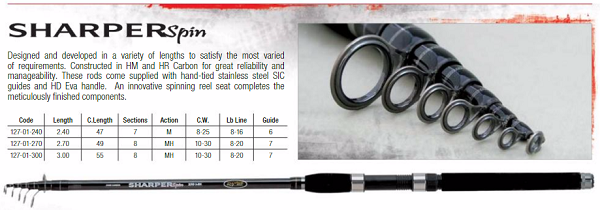 Σχεδιασμένο και ανεπτυγμένο σε διάφορα μήκη για να ικανοποιεί τις πιο ποικίλες απαιτήσεις. Κατασκευασμένο με HM και HR Carbon για μεγάλη αξιοπιστία και εύκολη διαχείριση. Αυτές οι ράβδοι παρέχονται με οδηγούς SIC από ανοξείδωτο χάλυβα δεμένους στο χέρι και λαβή HD Eva. Ένα καινοτόμο κάθισμα με περιστρεφόμενο καρούλι ολοκληρώνει τα σχολαστικά φινιρισμένα εξαρτήματα.