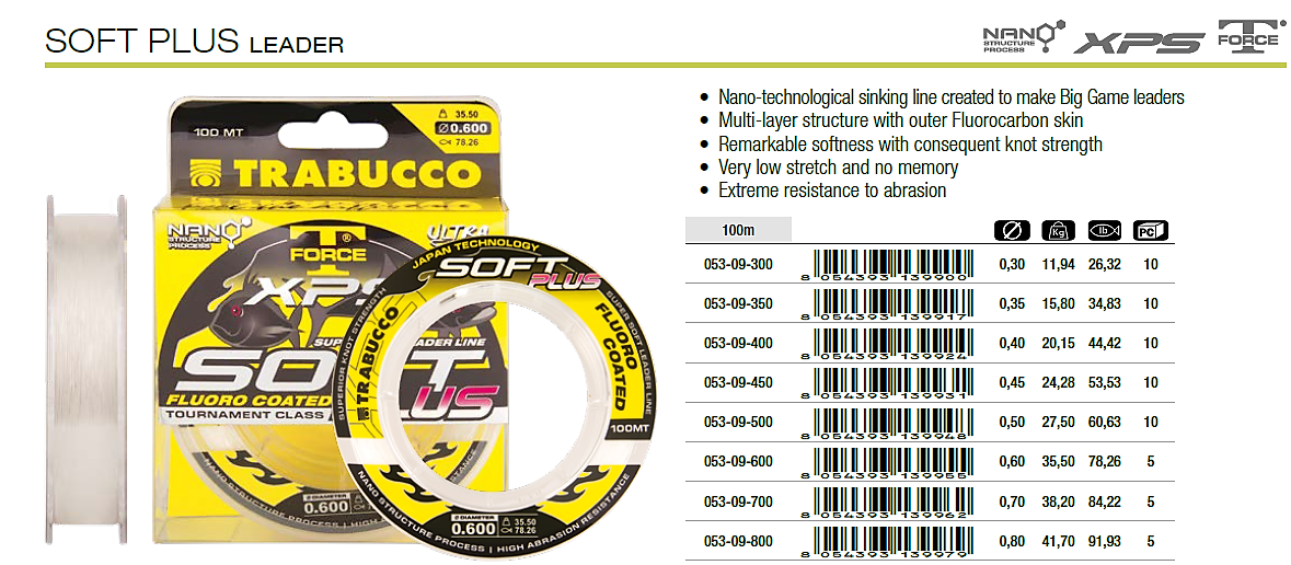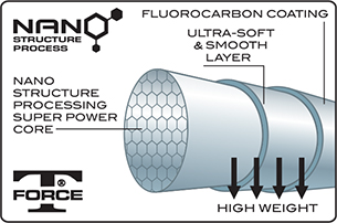 Exclusive leader line that obtains its extraordinary performance from a three-level structure. Outside, a layer of Fluorocarbon provides the abrasion resistance and avoids cutting by the fish teeth, shells and submerged rocks.